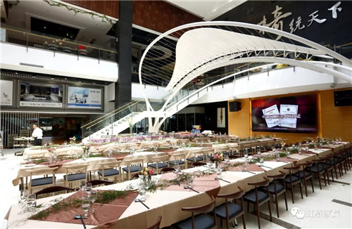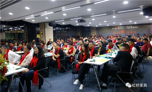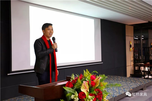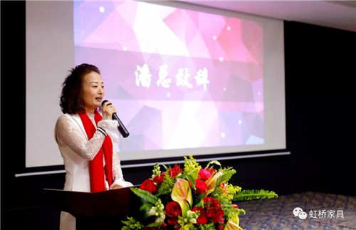 佛山市虹橋家具有限公司營銷執(zhí)行總裁潘紅梅女士首先致辭,致辭中,潘總談到在新的一年中將對鐵桿老客戶有更多優(yōu)惠政策,以回饋多年來一直支持虹橋的老客戶們;并號召伙伴們能以市場為導向,以消費者為中心,在廣闊的營銷道路上越走越遠。