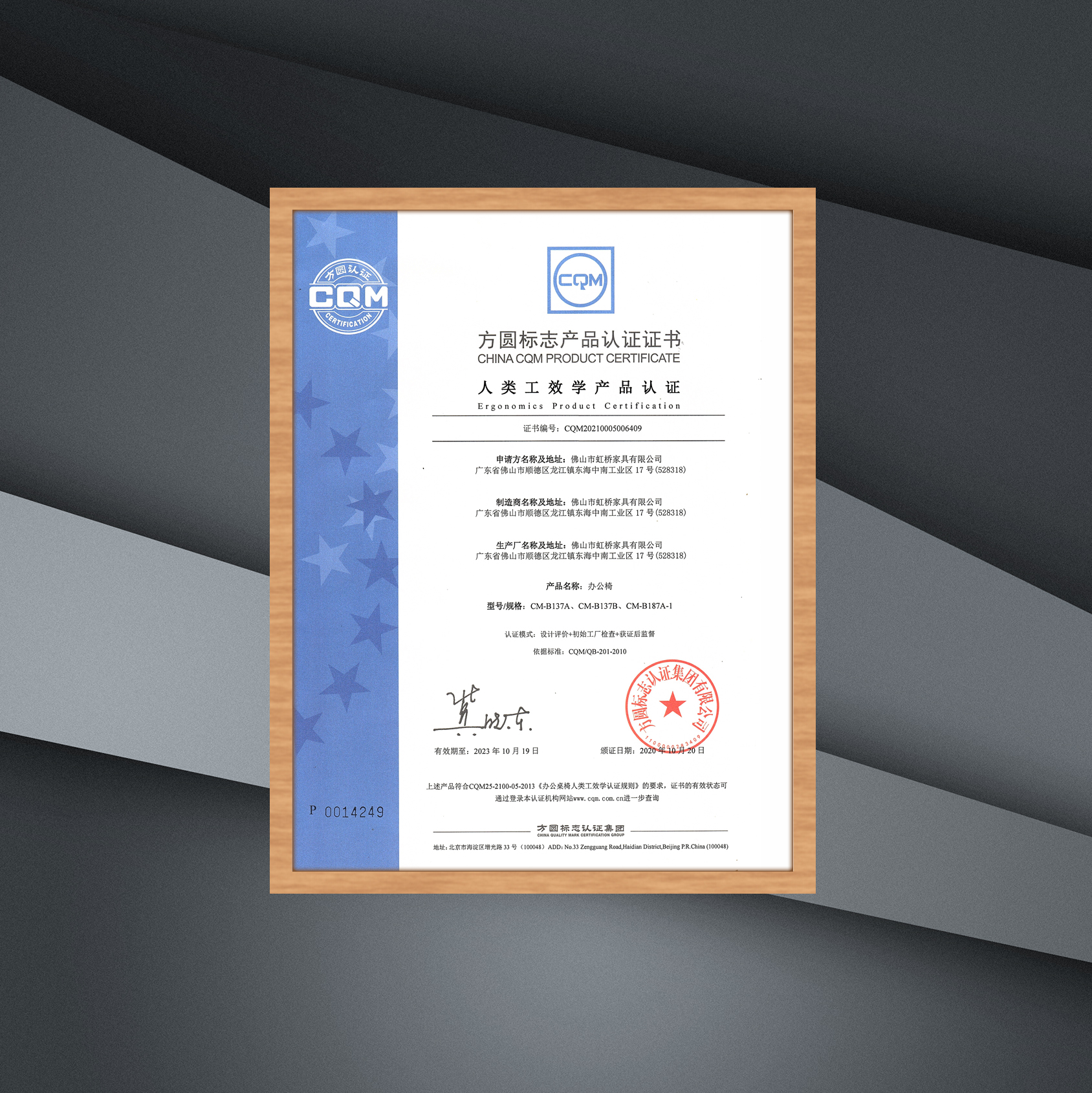 人類工效學(xué)產(chǎn)品認證證書-辦公椅(CM-B137A,CM-B137B,CM-B187A-1)