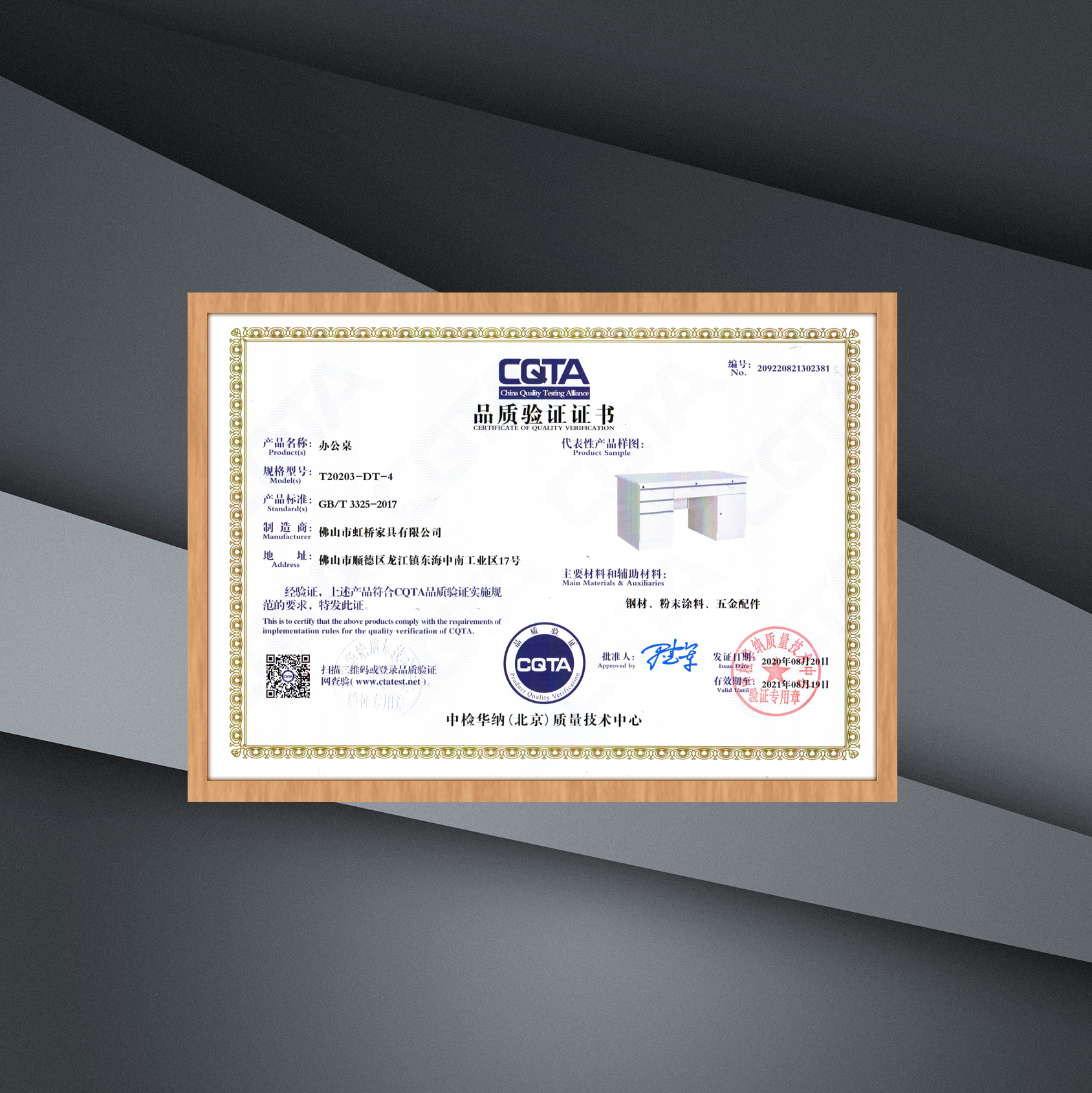 CQTA證書:辦公桌、等候椅、會議桌、皮革沙發(fā)、屏風(fēng)工作位、文件柜、醫(yī)用辦公椅、醫(yī)用床頭柜、醫(yī)用護士站、醫(yī)用藥柜、醫(yī)用診桌