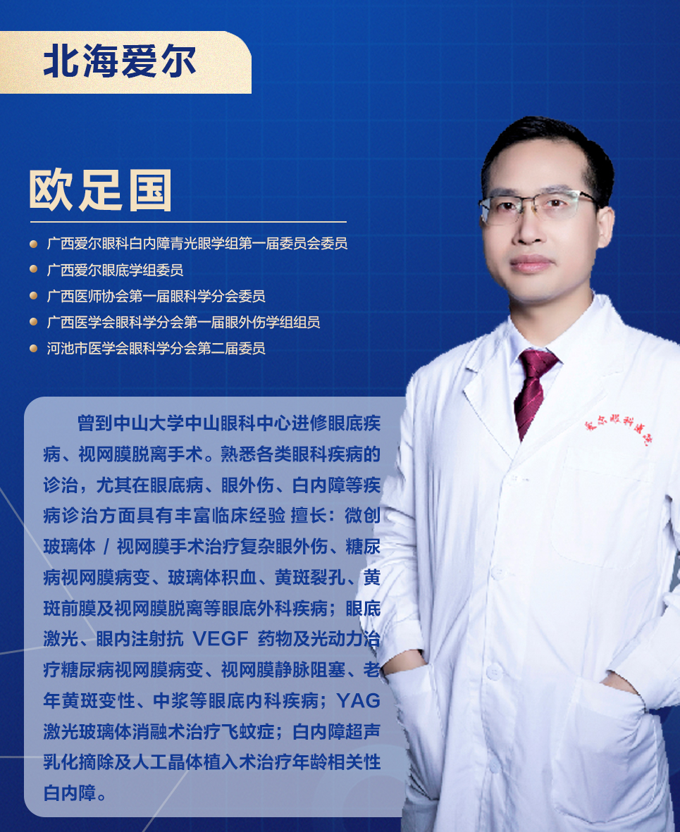 為滿足廣大群眾對眼健康的需求,北海愛爾眼科醫院特邀南寧愛爾眼底專科歐足國主任來院坐診,讓老百姓在家門口就能享受到省區專……